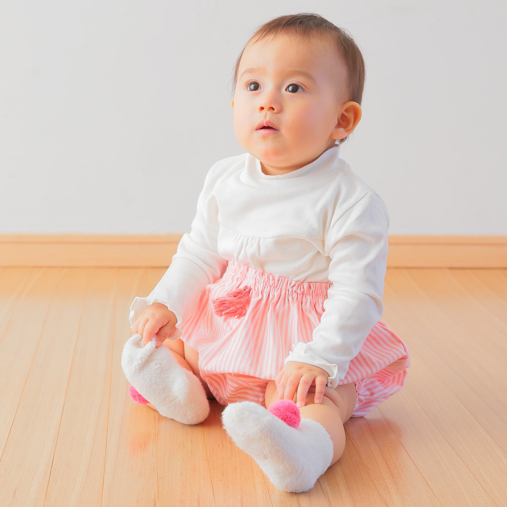 座っている白ソックスの女の子:65cm(0歳7ヶ月)